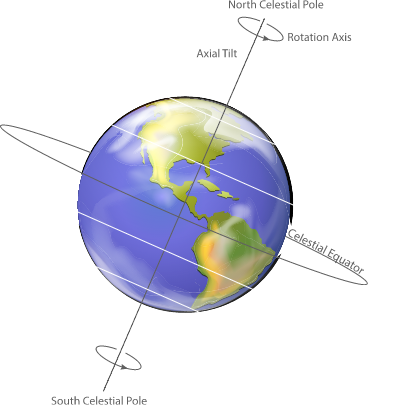 Earth spins on its axis like a top. But just like a spinning top that's winding down, Earth's axis doesn't point in a fixed direction - it slowly traces a circle in space over approximately 26,000 years. This is called axial precession.